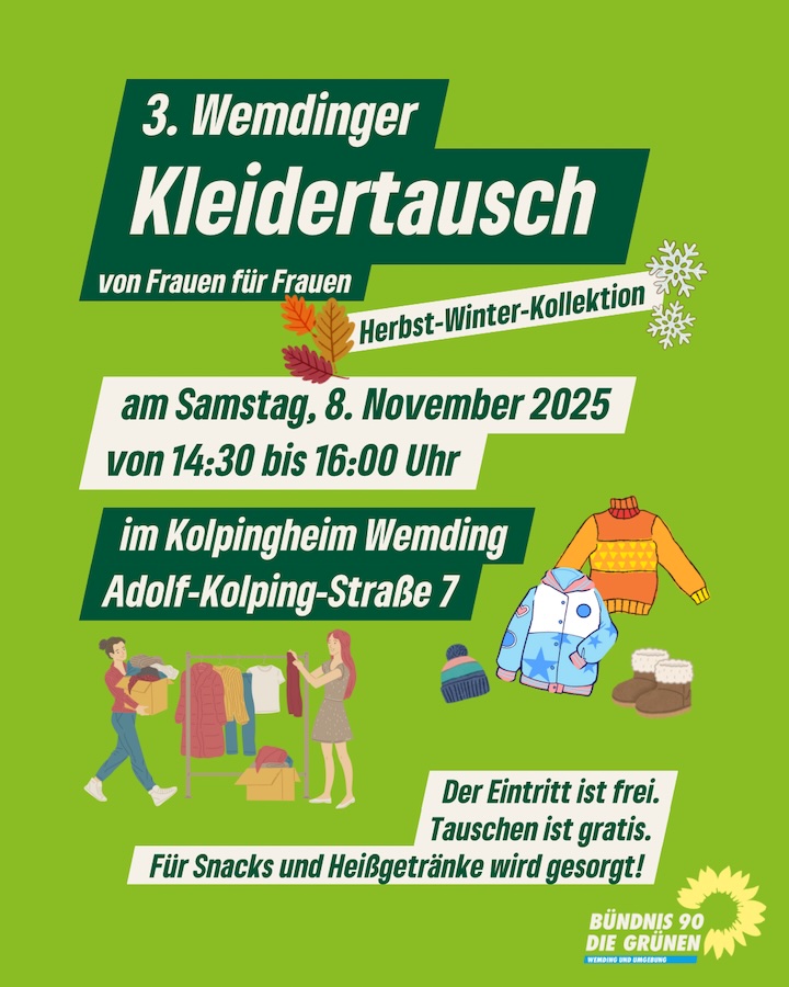Kleiderschrank voll, aber nichts zum Anziehen? Prima! Jede von uns hat Kleidung, die ihr nicht (mehr) passt oder gefällt. Her damit! Statt neu zu kaufen, treffen wir uns zum 3. Wemdinger Kleidertausch und schenken unbenutzten Klamotten ein neues Leben. Das schont den Geldbeutel sowie die Umwelt und macht Spaß!