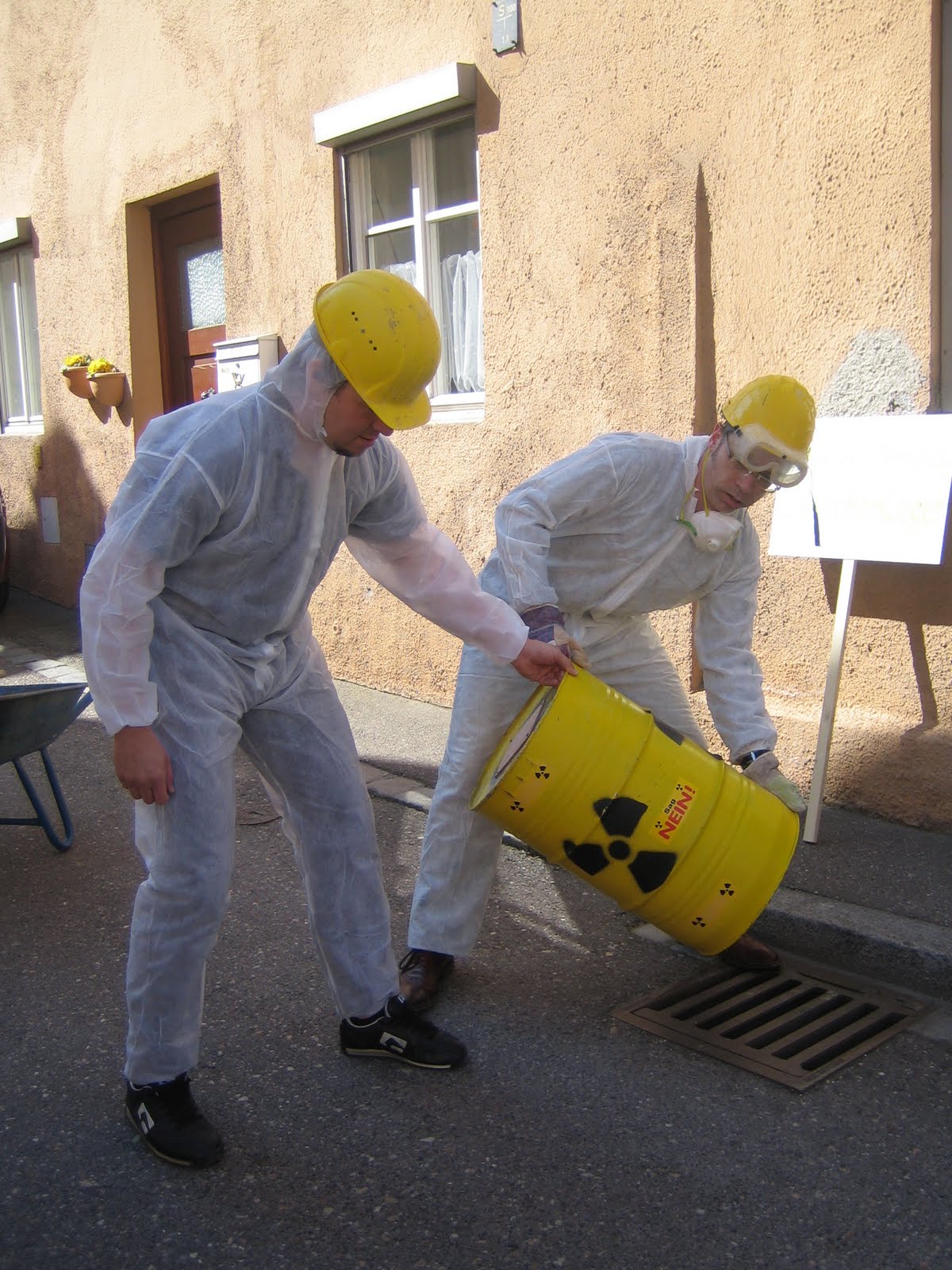 In der Aktion der Grünen wurde diese Suche thematisiert: Die Veranstalter suchten in der Nördlinger Innenstadt nach einem geeigneten Ort, und, da sie ihn nicht finden konnten, schütteten sie den Atommüll in ihrer Verzweiflung in die Kanalisation.