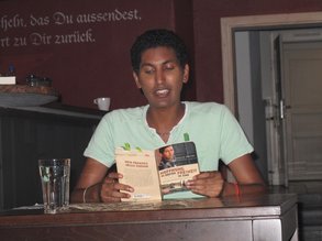 Auf Einladung der Wemdinger Grünen erzählte der eritreische Flüchtling, Buchautor und Oppositionelle Zekarias Kebraeb im vollbesetzten ehemaligen Gasthof Ambiente in Wemding seine Fluchtgeschichte und las aus seinem Buch "Hoffnung im Herzen, Freiheit im Sinn".