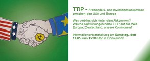 Die Grünen informieren am kommenden Samstag in Donauwörth über das geplante und umstrittene Freihandelsabkommen TTIP zwischen den USA und der EU.