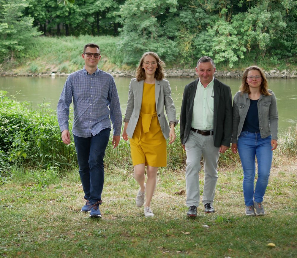 Das Bild zeigt von links nach rechts: Kreisvorsitzender Stefan Bieber, MdL Eva Lettenbauer, Bezirksrat Albert Riedelsheimer, Kreisvorsitzende Elisa Pfaff