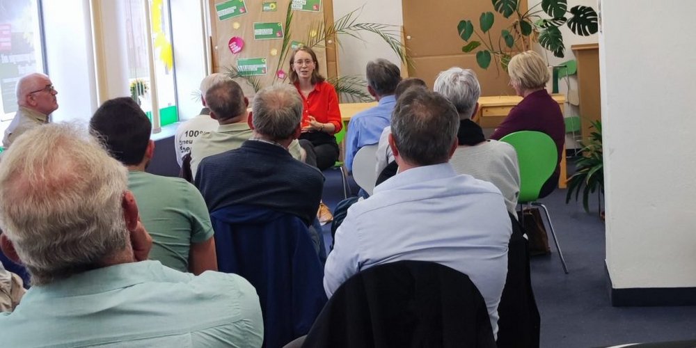 Die Abgeordnete beantwortete zahlreiche Fragen von Bürgerinnen und Bürgern und vernetzte Interessierte. Lettenbauer erklärte außerdem die Idee, dass der Landkreis und interessierte Kommunen, ein Energiewerk gründen ausführlicher. So können Ressourcen gebündelt, regionaler, klimaneutraler Strom erzeugt und Einnahmen generiert werden, die für niedrigere Kitagebühren oder Pflegeheime verwendet werden können. Lettenbauer thematisierte auch die derzeit knappen Netzkapazitäten in der Region. Die Wirtschaftsingenieurin steht dazu im engen Austausch mit den lokalen Netzbetreibern. Lettenbauer erklärt: „Die Ampel-Bundesregierung ermöglicht Netzbetreibern endlich eine vorausschauende Netzplanung. Damit und mit schnellem Ausbau sorgen wir dafür, dass dort wo eine Genossenschaft ein Windrad bauen möchte, auch ein Netzanschluss vorhanden ist.“