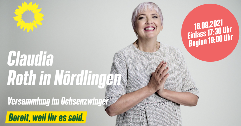 Die Bundestagsvizepräsidentin und Spitzenkandidatin der bayerischen Grünen Claudia Roth besucht im Rahmen ihrer Wahlkampf-Tour auch Nördlingen. Am 16.09.2021 um 19:00 beginnt die Versammlung im Ochsenzwinger, Einlass ist bereits ab 17:30. Gemeinsam mit dem Grünen Direktkandidaten für den Wahlkreis Donau-Ries, Stefan Norder, spricht Claudia Roth über die drängenden Fragen unserer Zeit und die Lösungen, die eine grüne Politik dafür bietet. Der Schwerpunkt liegt auf der Frage, wie sich effizienter Klimaschutz so gestalten lässt, dass er für alle Menschen eine positive Entwicklung bringt, egal ob in der Stadt oder auf dem Land. Klimaschutz und soziale Gerechtigkeit dürfen nicht gegeneinander ausgespielt werden, sondern funktionieren Hand in Hand, so die feste Überzeugung der Grünen Spitzenpolitikerin.