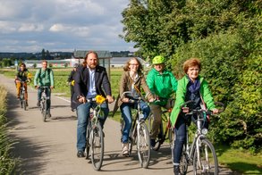 Die Grüne Landtagskandidatin und Kreisvorsitzende Eva Lettenbauer konnte den Vorsitzenden der Grünen Bundestagsfraktion Dr. Anton Hofreiter im Landkreis begrüßen. Gemeinsam mit ihm forderten die Kreisgrünen am Donauwörther Bahnhof häufigere Zugverbindungen Richtung Treuchtlingen, denn am Wochenende gibt es derzeit nur noch alle zwei Stunden Züge. Lettenbauer setzt sich für mindestens stündliche Verbindungen und Verbesserungen ab 2019 ein. In Tapfheim machte Hofreiter vor vollem Saal deutlich, dass die Klimakrise enorme globale Auswirkungen hat, die so vor wenigen Jahren noch unahnbar waren. Um weitere Temperaturanstiege und eine massive Erhöhungen des Meeresspiegels einzudämmen braucht es eine Agrarwende hin zu bäuerlicher und regionaler Landwirtschaft, die Energiewende, umweltschonendes Wirtschaften, aber auch eine Verkehrswende. Hofreiter betonte die Automobilindustrie könne nur durch schrittweise Abkehr vom Verbrennungsmotor am Weltmarkt bestehen. Anschließend widmeten sich Lettenbauer und Hofreiter der Fahrradinfrastruktur im Landkreis zusammen mit den als Mitdiskutanten geladenen Udo Niemeyer, ADFC Donau-Ries, sowie Albert Riedelsheimer, Leiter des Arbeitskreises Fahrrad der Stadt Donauwörth. Mehr und sicherere Radwege werden die Kreisgrünen nachdrücklich vorantreiben. Lettenbauer hob hervor sich auch für mehr finanzielle Unterstützung durch den Freistaat für Kommunen und Kreise zum Ausbau der Radwege einzusetzen.
