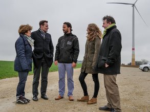 Die Grünen im Landkreis besichtigten gemeinsam mit Ludwig Hartmann, Fraktionsvorsitzender von Bündnis 90/ Die Grünen im Bayerischen Landtag, die Windkraftanlagen im Holzheimer Ortsteil Riedheim. Hartmann zeigte sich erfreut über die neu entstandenen Anlagen. Doch insgesamt vier Windräder im gesamten Landkreis seien zu wenig, um die Energiewende erfolgreich umzusetzen. Die Landesregierung müsse ihre Blockade der Windkraft in Bayern beenden. Grünen-Bundestagskandidat Albert Riedelsheimer nennt das Gelingen der Energiewende eines der wichtigsten Ziele grüner Politik. Ohne die Nutzung von Windenergie werde dies nicht gelingen. Er möchte mehr Investoren die Möglichkeit eröffnen, im Landkreis in Sachen Windkraft aktiv zu werden, dabei sollen Bürgerwindkraftanlagen den Vorrang haben. Wo es Probleme mit Lärmbelästigung und Artenschutz gibt, will er mit den Beteiligten nach konstruktiven Lösungen suchen, wie es in anderen Verfahren auch gemacht wird. Grünen-Kreisvorsitzende Ursula Kneißl-Eder setzt sich seit vielen Jahren für die Energiewende und ganz besonders für die Abschaltung des AKW Gundremmingen ein. Sie machte deutlich, dass Alternativen im Bereich der erneuerbaren Energien geschaffen werden müssen. Bürgerbeteiligung liegt ihr bei der Windkraft ganz besonders am Herzen. Für die Akzeptanz in der Bevölkerung sei es wichtig, dass die Bürgerinnen und Bürger einen Bezug zu "ihrem Windrad" vor Ort haben. Bayerns Grüne Jugend Landessprecherin Eva Lettenbauer wertete die Gespräche der Grünen mit den Windparkentwicklern, Bürgermeister Ruttmann und weiteren Interessierten als wertvoll und erfolgreich: "Uns Grünen ist der Austausch enorm wichtig und für künftige Projekte setzen wir uns besonders für die Beteiligung und frühzeitige Einbeziehung der Bevölkerung ein."
