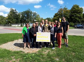 Auch in Donauwörth versammelten sich am bayernweiten Aktionstag gegen Ankerzentren Bürgerinnen und Bürger vor dem Ankerzentrum, darunter Engagierte aus der Flüchtlingshilfe. Die Donau-Rieser Grünen hatten eine Kundgebung für dezentrale Unterbringung und Teilhabe sowie Integration statt Unterbringung in Sammellagern angemeldet.