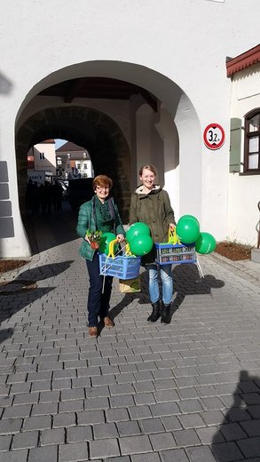 Zum internationalen Frauentag verteilten Kreissprecherin Ursula Kneißl-Eder und die Sprecherin der Grünen Jugend Schwaben Eva Lettenbauer in Monheim Blumen und Informationen. Auch in Nördlingen war B90/ Die Grünen auf der Straße um auf die immernoch vorherrschende Ungleichheit zwischen Männern und Frauen aufmerksam zu machen:
