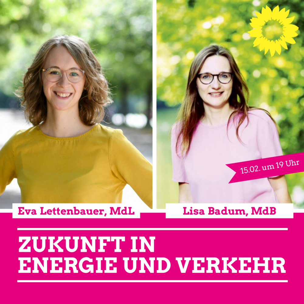 Kommenden Montagabend, 15.02. um 19 Uhr, laden die GRÜNEN Donau-Ries zur einer digitalen Diskussion rund um nachhaltige Energie und die dringend benötigte Verkehrswende ein. Lisa Badum, Sprecherin für Klimapolitik der Grünen im Bundestag, wird über die Perspektiven und Möglichkeiten auf Bundesebene sprechen. Eva Lettenbauer, Landtagsabgeordnete und Landesvorsitzende der GRÜNEN, wird anschließend speziell auf die Situation in Bayern und dem Donau-Ries Kreis eingehen. Anschließend stehen beide für eine Diskussion und einen Austausch zur Verfügung. Die Anmeldung erfolgt durch eine formlose E-Mail an veranstaltung@gruene-donauries.de und wird als Videokonferenz über Zoom stattfinden.