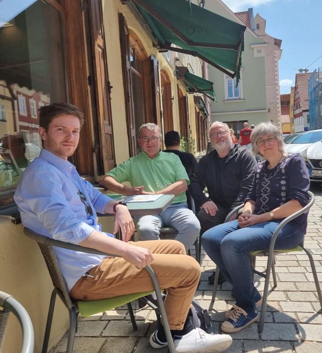 Neben Eva Lettenbauer für den Landtag, tritt Albert Riedelsheimer für den Bezirkstag bei den Landtags- und Bezirkstagswahlen im Oktober 2023 erneut an. Seine regionalen und politischen Schwerpunkte stellte der Bezirksrat am 3. Juni den Nördlinger Grünen vor. Beim monatlichen "Markt-Ratsch" sprach der Diplom-Sozialpädagoge mit der Kreissprecherin Elisa Pfaff und dem Sprecher der Nördlinger Grünen, Manfred Schormüller, über seinen Einsatz für die Belange von Menschen mit psychischen Erkrankungen und über sein Engagement als Umweltbeauftragter des Bezirks. So bringt er sich hoch engagiert dafür ein, dass der Bezirk Schwaben bis zum Jahr 2030 das Ziel erreicht, klimaneutral sein wird. "Wir schätzen es sehr, dass sich Albert Riedelsheimer für die Gesundheit der Menschen, ob klimapolitisch oder psychisch, stark macht und freuen uns, ihn bei seiner Kandidatur unterstützen zu können", sagte Manfred Schormüller dazu.