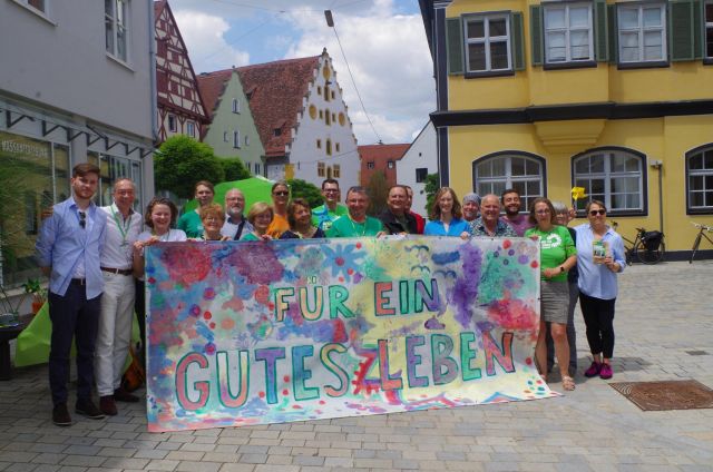 Der Kreisverband von Bündnis 90/Die Grünen feierte am Samstag am Nördlinger Hafenmarkt ihren Wahlkampfauftakt. Die Landtagsabgeordnete Eva Lettenbauer und der Bezirkstagsabgeordnete Albert Riedelsheimer luden ein zum "Fest für ein gutes Leben". In ihren Gesprächen mit den Besucherinnen und Besuchern sprachen sie sowohl über bayerische Themen, wie einen guten Radwegausbau, die Chancen für bayerische Windräder und den Mut, den eine tatkräftige Klimapolitik braucht, als auch über deutsche und europäische Politik.